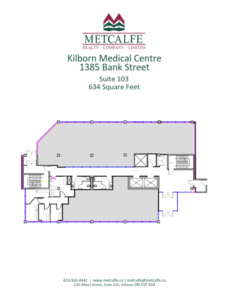 Suite 103, 1385 Bank Street Space: 634 sq.ft Address: 1385 Bank St, Ottawa, ON K1H 8N4, Canada Property type: Medical, Office Centretown Floor Plan